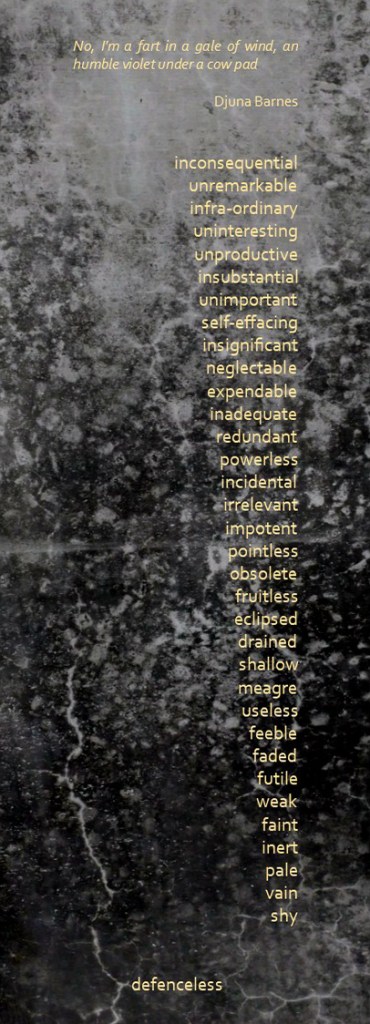 Whether lasting insignificance is possible is probably too soon to tell, and I suggest the value of In medias res will have to be appraised later on, perhaps a year from now, or in ten year’s time. Or, maybe, I need to possess myself in patience in the genuinely long term. The oldest objects in the montage are the lithics – stone fragments, made of silcrete – worked by humans some 25.000 years ago, so perhaps we should let the montage rest for another 25.000 years, and let future archaeologists (or whoever will be tasked with the study of insignificant stuff in the distant future) judge whether the objects are capable of disentangling themselves from their pasts. Then again, why set a date of 25.000 years, hinging on the arbitrary figure of the human? Actually, the silcrete stones were formed by geological processes much earlier, during the Mesozoic Era, roughly between 252 and 66 million years ago. So, maybe this is how long we should allow In medias res to rest, before taking stock of its significance or lack thereof. – Well, I do not seem to be able to make up my mind. When traversing insignificance, hesitation and doubt are of the essence, I suppose.