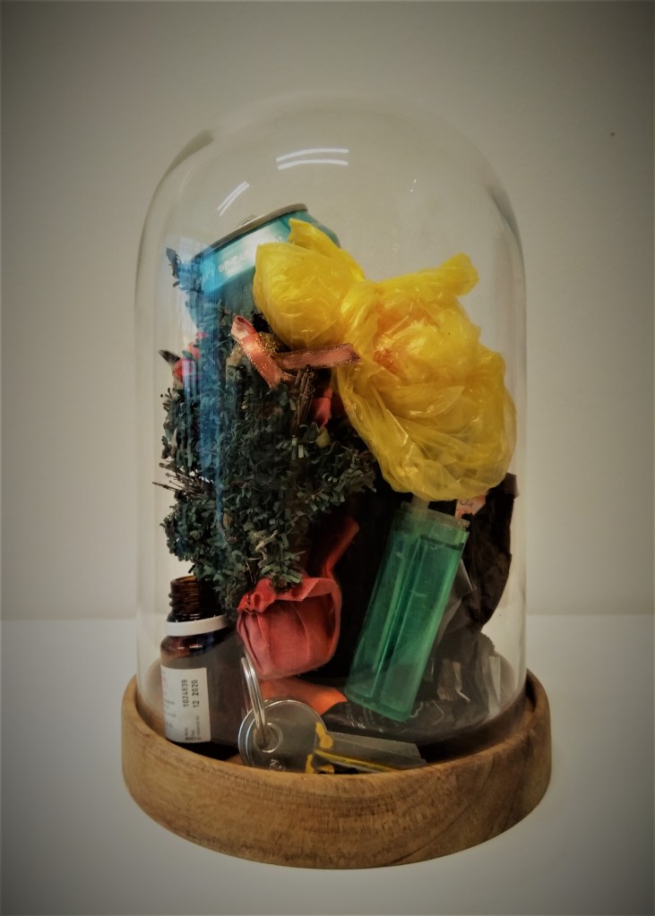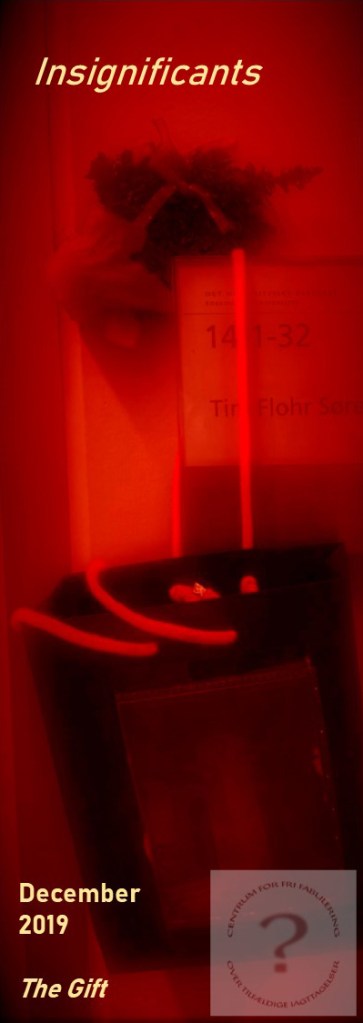 On the morning of the very first exhibition opening in the Insignificants series, I found a black paper bag with orange fabric straps hanging by the door to my office. Opening the bag, I found a rather strange collection of things (listen in the bookmark below). The donor of this gift remained anonymous, and I had no idea who might have been so kind as to provide me with this little surprise.